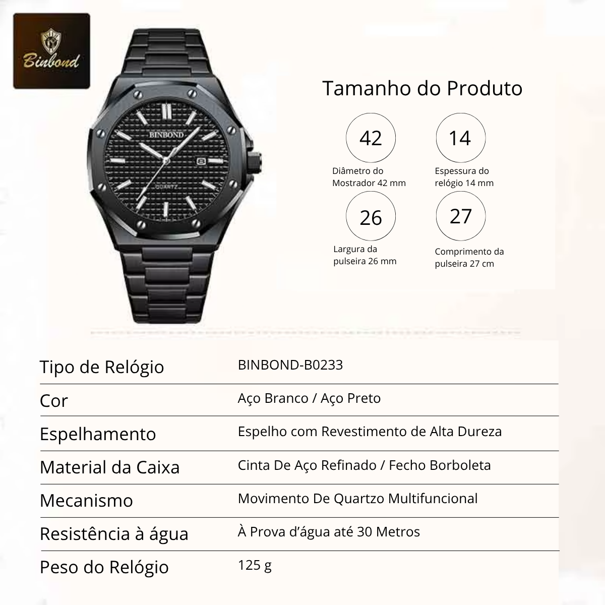 Chamada para Ação: não perca a oportunidade de elevar seu estilo com o Binbond B0233 — um relógio que reflete bom gosto, confiança e sucesso em cada segundo.