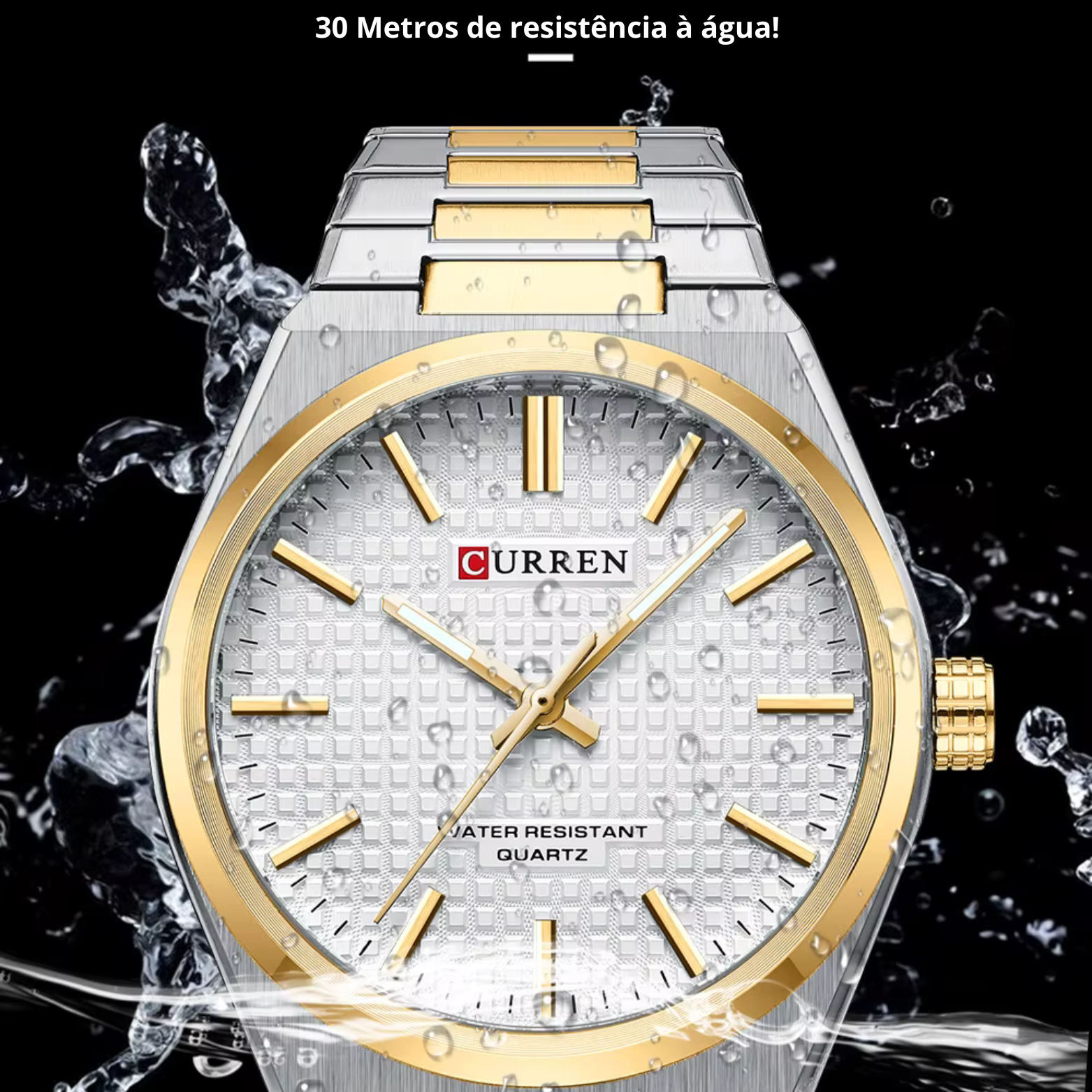 Com resistência à água de até 3 BAR (30 metros), o Curren 8439 é ideal para o cotidiano, suportando respingos e pequenas exposições à água, como lavar as mãos ou chuva leve — embora não seja indicado para mergulho ou banho.