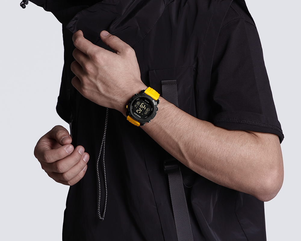 O display digital LCD proporciona uma leitura clara e precisa das informações de hora, dia e data. Protegido por um cristal acrílico HD, o mostrador oferece excelente visibilidade e resistência a riscos, enquanto o movimento digital garante confiabilidade e desempenho consistente.